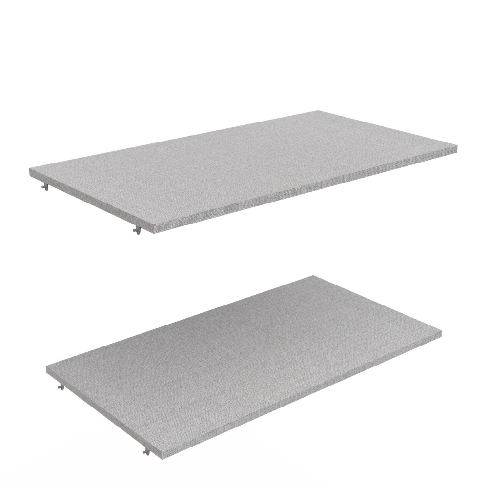 Set dodatnih notranjih polic za vse velikosti garderobnih omar ponudbe GHOST, v sivi barvi ki se ujema z njihovo notranjostjo.