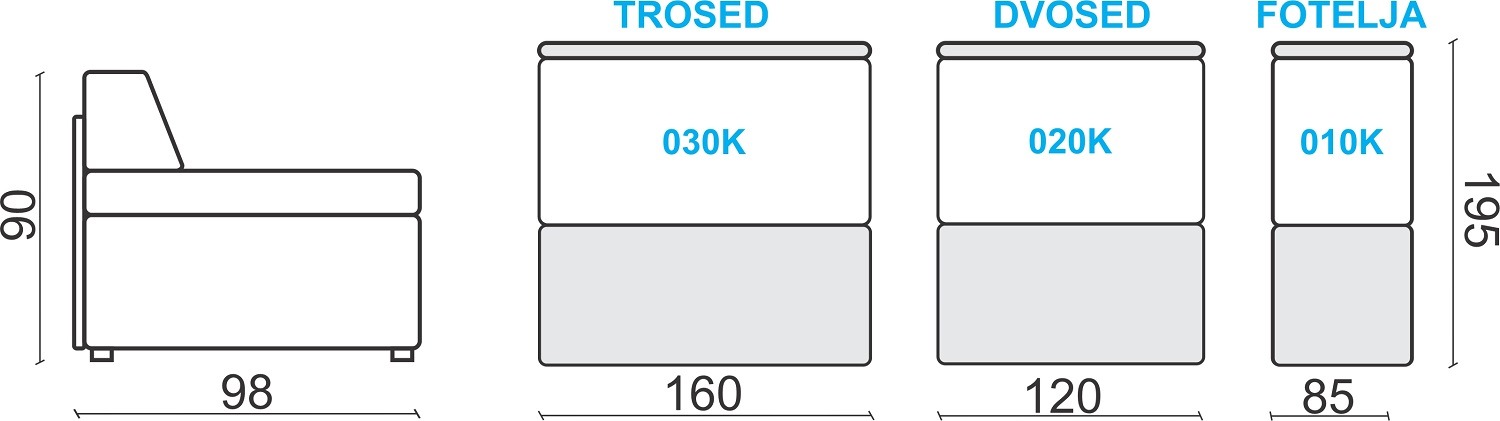 Kolekcijo sestavljajo različni elementi, ki jih lahko kupujete posamezno: trosed, dvosed ali fotelj.