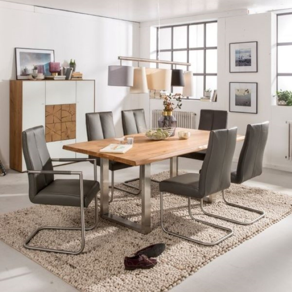 Modern sistem jedilnih miz in klopi, ki vam omogoča, da si sami sestavite mizo oz. klop po vašem okusu. Na voljo so različne plošče, v večih dimenzijah, ter različne oblike nog. Katere dele boste izbrali, se lahko odločite sami, glede na vaše potrebe in želje. Plošče so narejene iz masivnega, oljenega, hrastovega lesa v rustik izvedbi, Podnožja pa so narejena iz kovine. Na voljo so štiri različne oblike miznih plošč. Plošča z ravnim robom (debelina 2+2 cm), z naravnim robom (debelina 2+2 cm), švicarski robom (debelina 2+2 cm) in švicarskim robom z zaobljenimi vogali (debeline 2,6 cm). Vse plošče imajo širinsko lepljenje (DL), razen plošče z ravnim robom, ki ima širinsko-dolžinski spoj (FJ). Na voljo pa je tudi sedem različnih oblik nog (lambada, U, X, W, A, spyder in cross). Prav tako je na voljo plošča za klop z naravnim robom in širinskim lepljenjem (DL), v dveh velikostih. Podnožje za klop je na voljo v U izvedbi. Oglejte si celotno ponudbo programa in si prilagodite mizo po svojem okusu.