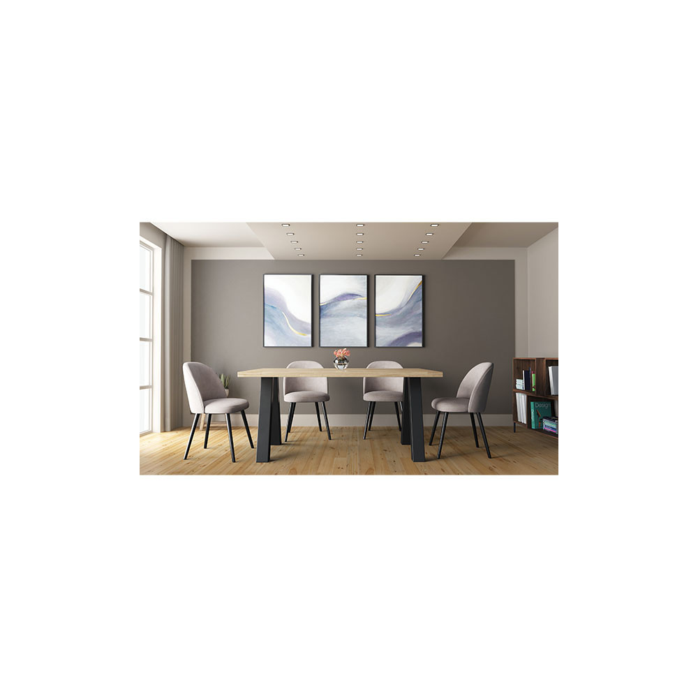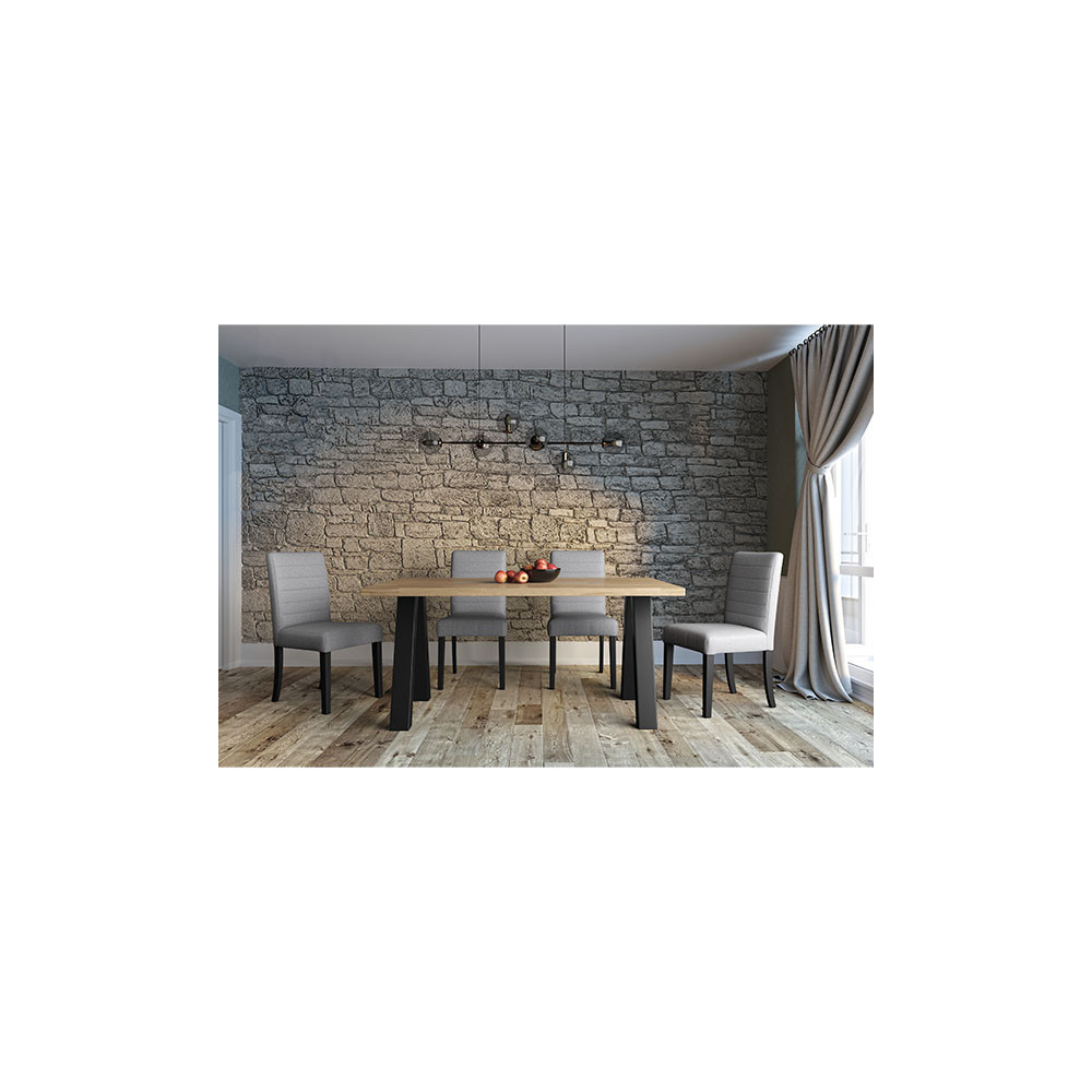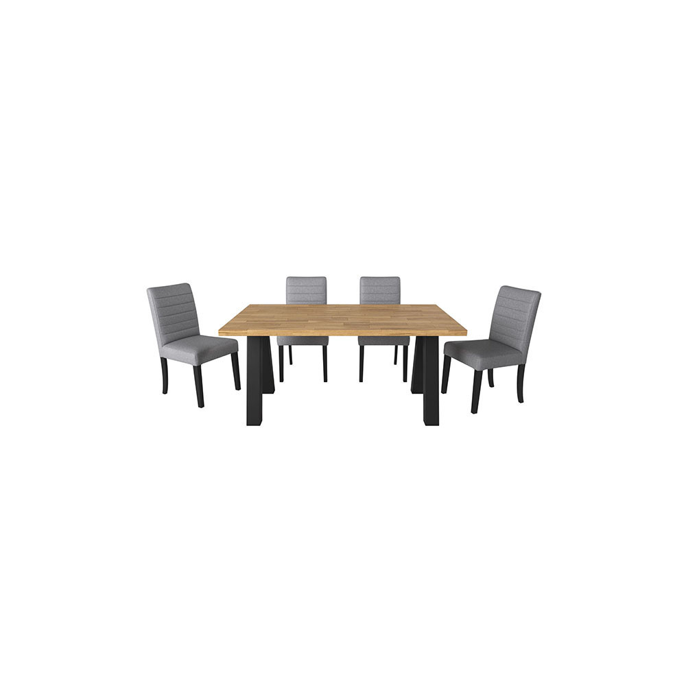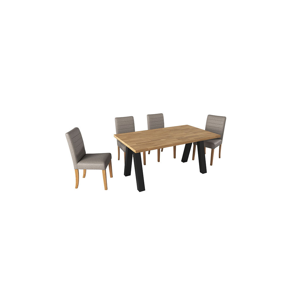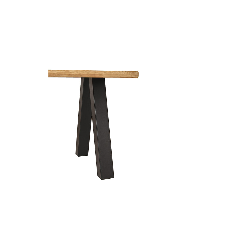 Modern sistem jedilnih miz in klopi, ki vam omogoča, da si sami sestavite mizo oz. klop po vašem okusu. Na voljo so različne plošče, v večih dimenzijah, ter različne oblike nog. Katere dele boste izbrali, se lahko odločite sami, glede na vaše potrebe in želje. Plošče so narejene iz masivnega, oljenega, hrastovega lesa v rustik izvedbi. Podnožja pa so narejena iz kovine in prašno lakirana v črni barvi. Na voljo so štiri različne oblike miznih plošč. Plošča z ravnim robom (debelina 2+2 cm), z naravnim robom (debelina 2+2 cm), švicarski robom (debelina 2+2 cm) in švicarskim robom z zaobljenimi vogali (debeline 2,6 cm). Vse plošče imajo širinsko lepljenje (DL), razen plošče z ravnim robom, ki ima širinsko-dolžinski spoj (FJ). Na voljo pa je tudi sedem različnih oblik nog (lambda, U, X, W, A, spyder in cross). Prav tako je na voljo plošča za klop z naravnim robom in širinskim lepljenjem (DL), v dveh velikostih. Podnožje za klop je na voljo v U izvedbi. Oglejte si celotno ponudbo programa in si prilagodite mizo po svojem okusu.