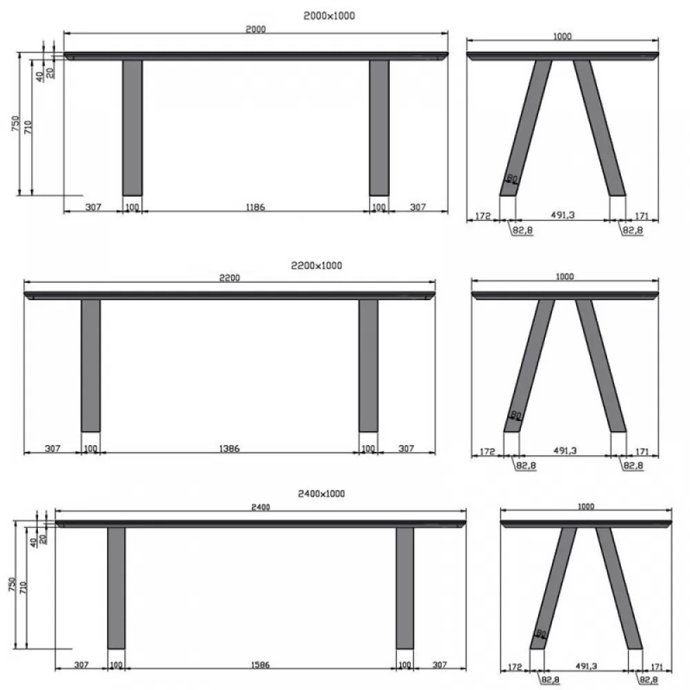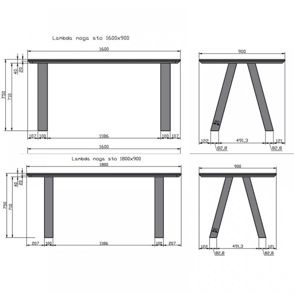Kovinske noge v obliki grške črke Lambda, dimenzije 8x10 cm. Noge so kompatibilne z vsemi oblikami in dimenzijami miz iz tega programa (160/180/200/220/240). V setu sta dve nogi.