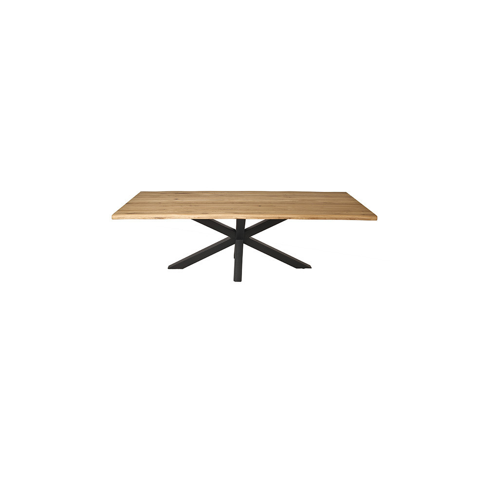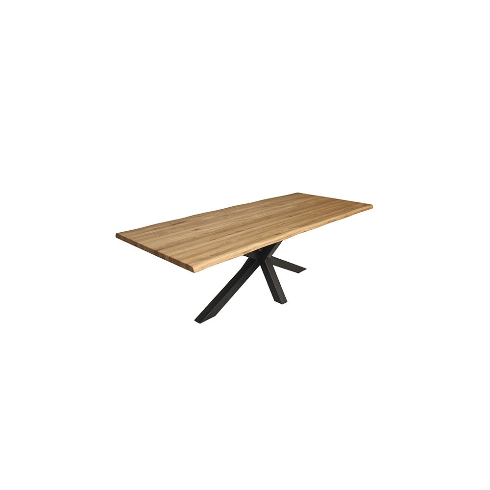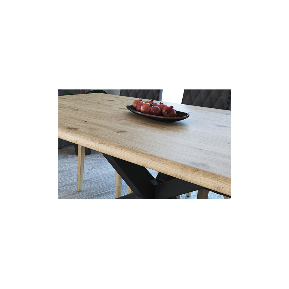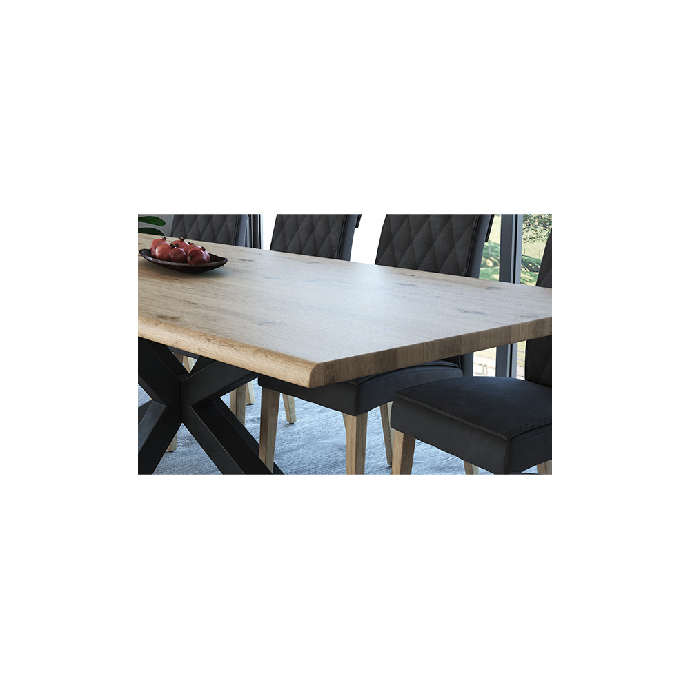 Mizna plošča z naravnim robom, narejena iz masivnega, oljenega, hrastovega lesa v rustik izvedbi. Plošča je debeline 2+2 cm. Na voljo so različne dimenzije. Plošča je kompatibilna z vsemi oblikami nog iz tega programa.