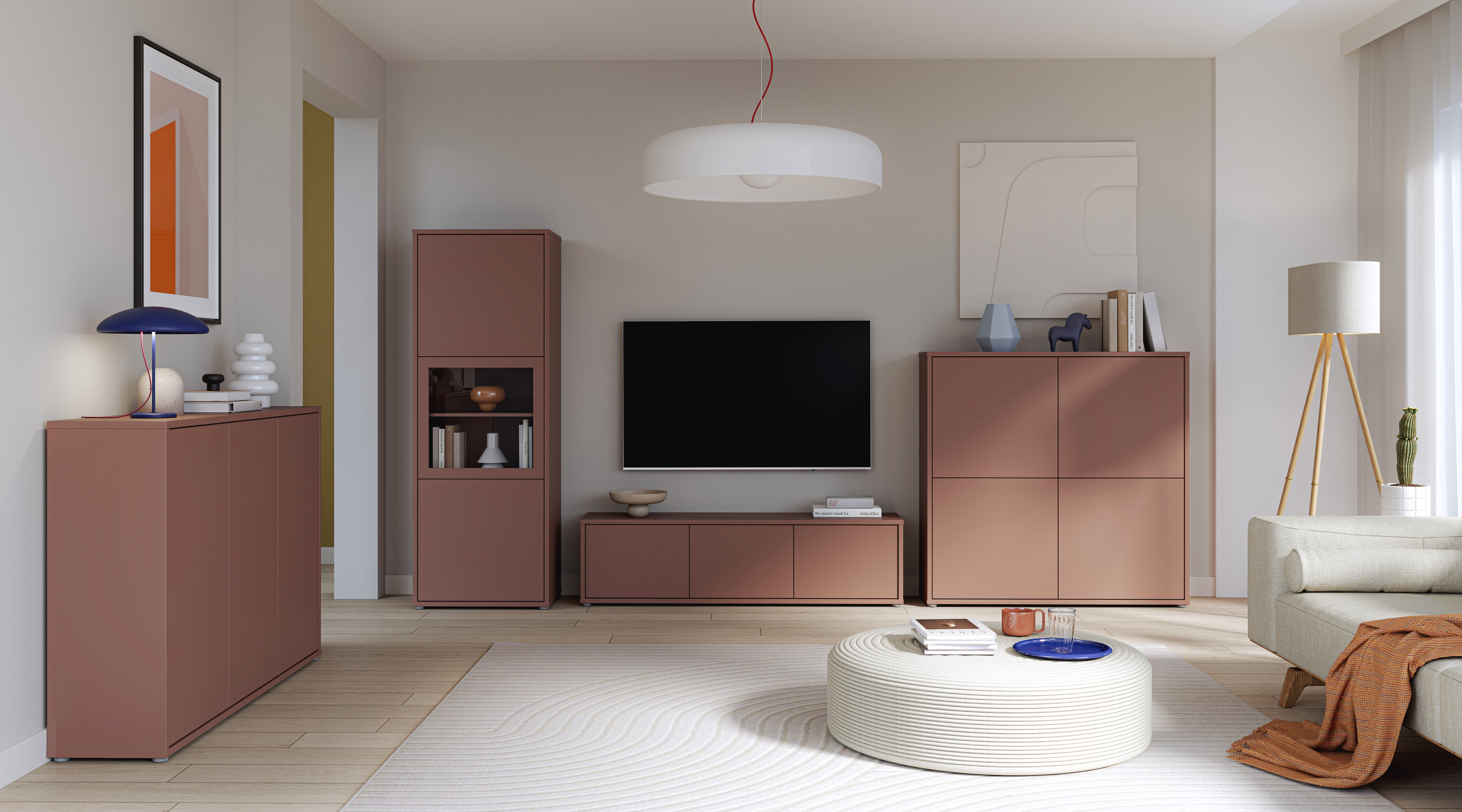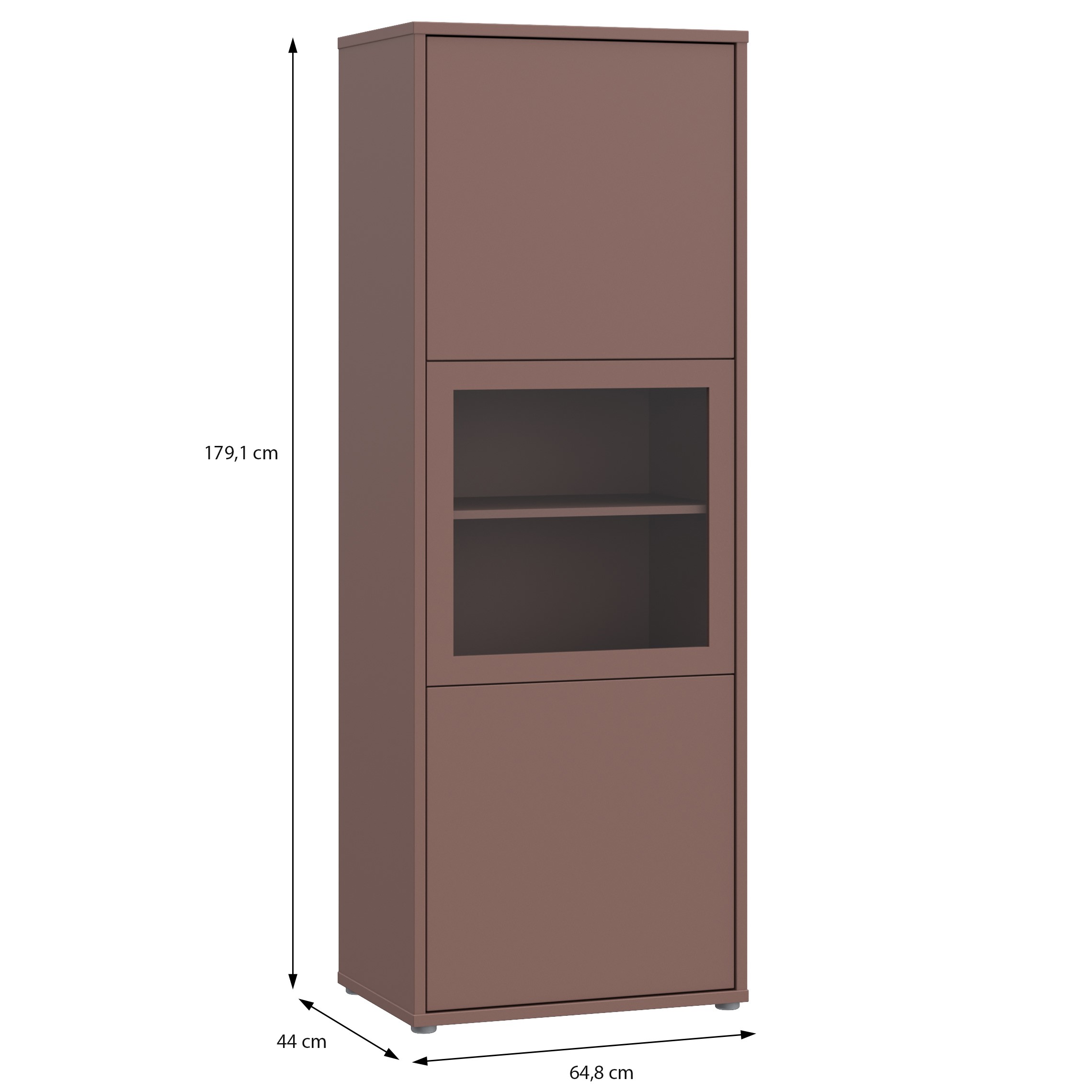 Visoka vitrina za vse situacije, ki potrebujejo prostorsko učinkovito shranjevanje z razgledom. Na voljo v bež ali v terakota barvi, združuje funkcionalnost s sodobno estetiko, ki se dobro vključi v vsak sodoben prostor.