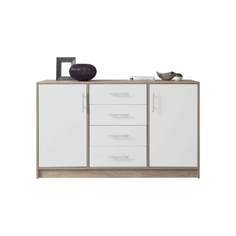 Komoda velika SMART iz kolekcije SMART sestavljivih omar. Omara ponuja veliko prostora za shranjevanje. Dobavljiva je v barvni kombinaciji - sonoma hrast in bela, hrast artisan in antracitni barvi. Štirje predali nudijo veliko prostora za shranjevanje manjših predmetov. Police levo in desno pa omogočajo shranjevanje večjih stvari.