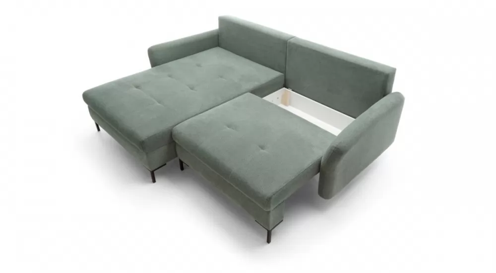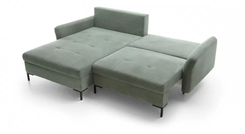 Moderna sedežna garnitura MARCO v obliki črke L. Garnitura se raztegne in ponuja ležišče, dimenzije 130x202 cm. Garnitura stoji na modernih kovinskih nogicah, kar omogoča enostavnejše čiščenje. Za svojo garnituro lahko izbirate med različnimi tkaninami in barvami. Prav tako lahko izberete levo ali desno postavitev garniture. Garnitura je kvalitetne izdelave, oblazinjena z visokokakovostno peno v kombinaciji z valovitimi vzmetmi.