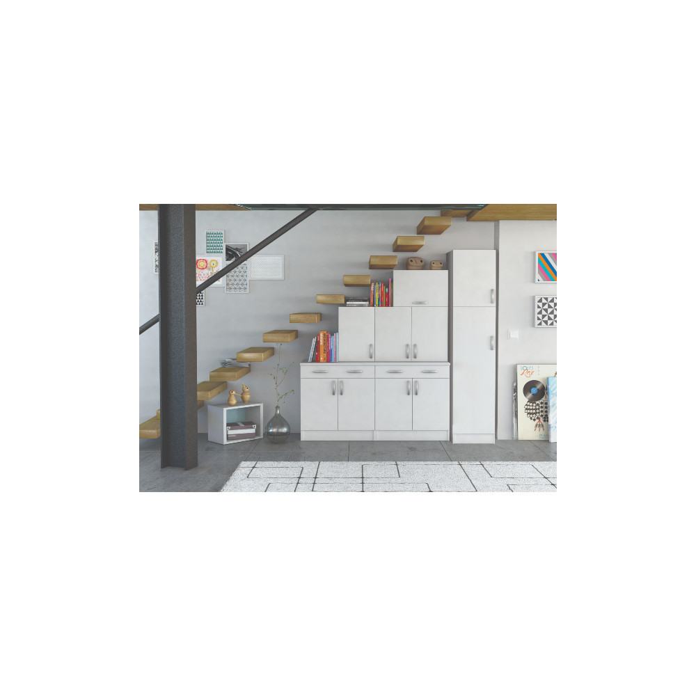 Moderna visoka kuhinjska enota v vodoodporni beli barvi. Nevtralna barva in diskreten dizajn omogočata da se element prilega vsakemu dekorju. Enota je narejena iz 100% melamina. V notranjosti sta dva velika prostora za shranjevanje, vsak s svojimi vrati. Znotraj so 4 police, nastavljive na več višinskih nivojev. Možna je sestava na desni ali na levi strani. Oglejte si še druge izdelke iz istega programa.