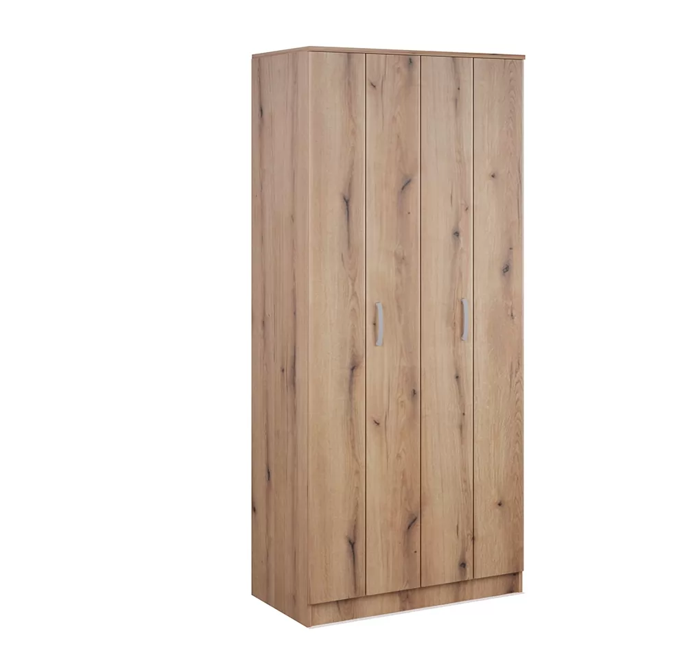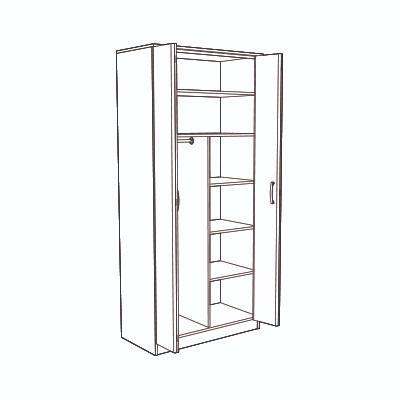 Moderna omara z sklopnimi vrati, ki je dobavljiva v večih barvah. Notranjost omare vsebuje pol polic in obešalno palico