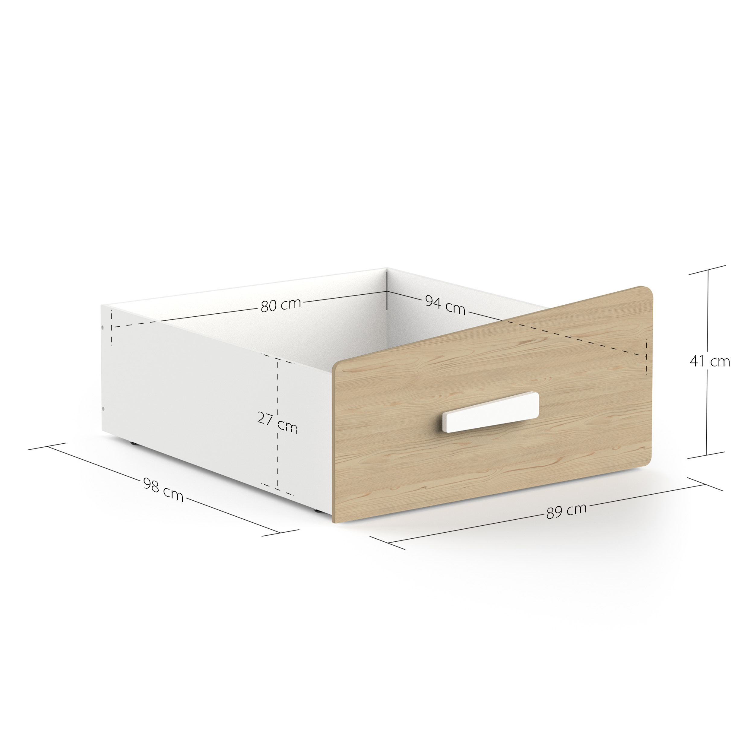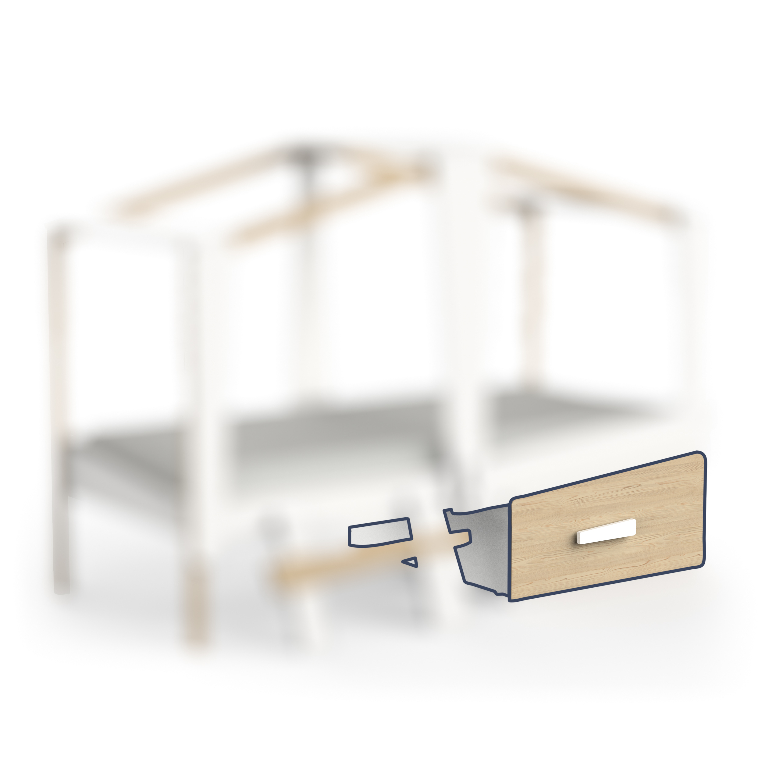 Zraven lahko dokupite tudi dodaten predal, v ujemajoči barvni shemi in z asimetrično fronto ki se natančno prilega pod posteljo. Letveni okvir je že priložen s posteljo.
