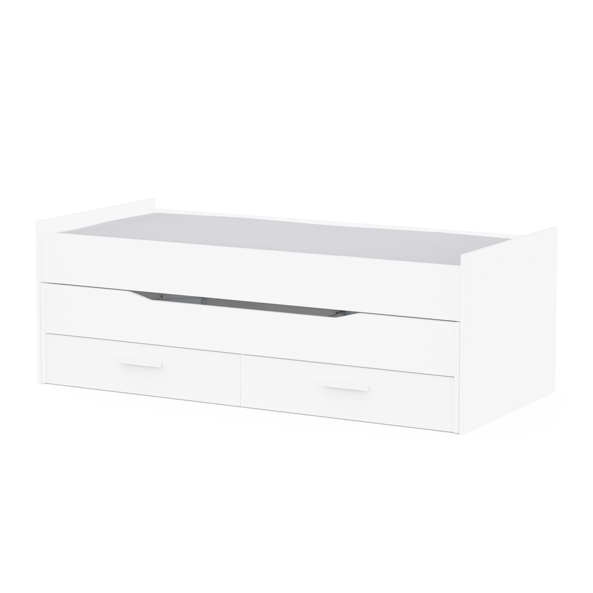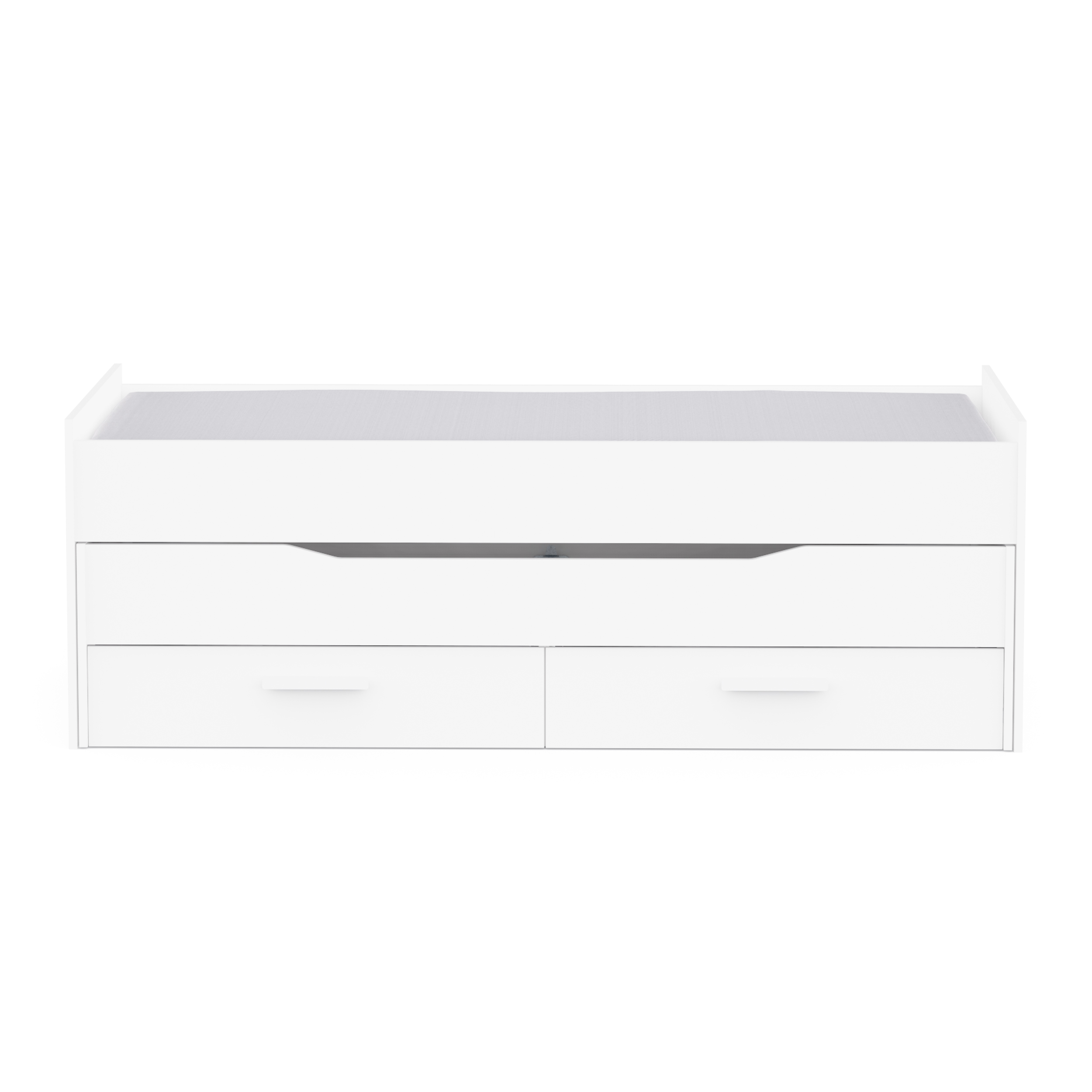 Izkoristite prostor v spalnici s to vsestransko belo zložljivo posteljo, ki združuje funkcionalnost in sodoben slog. Celotna postelja je izdelana v čisti beli barvi mat, zaradi česar se enostavno ujema z vsako opremo prostora.