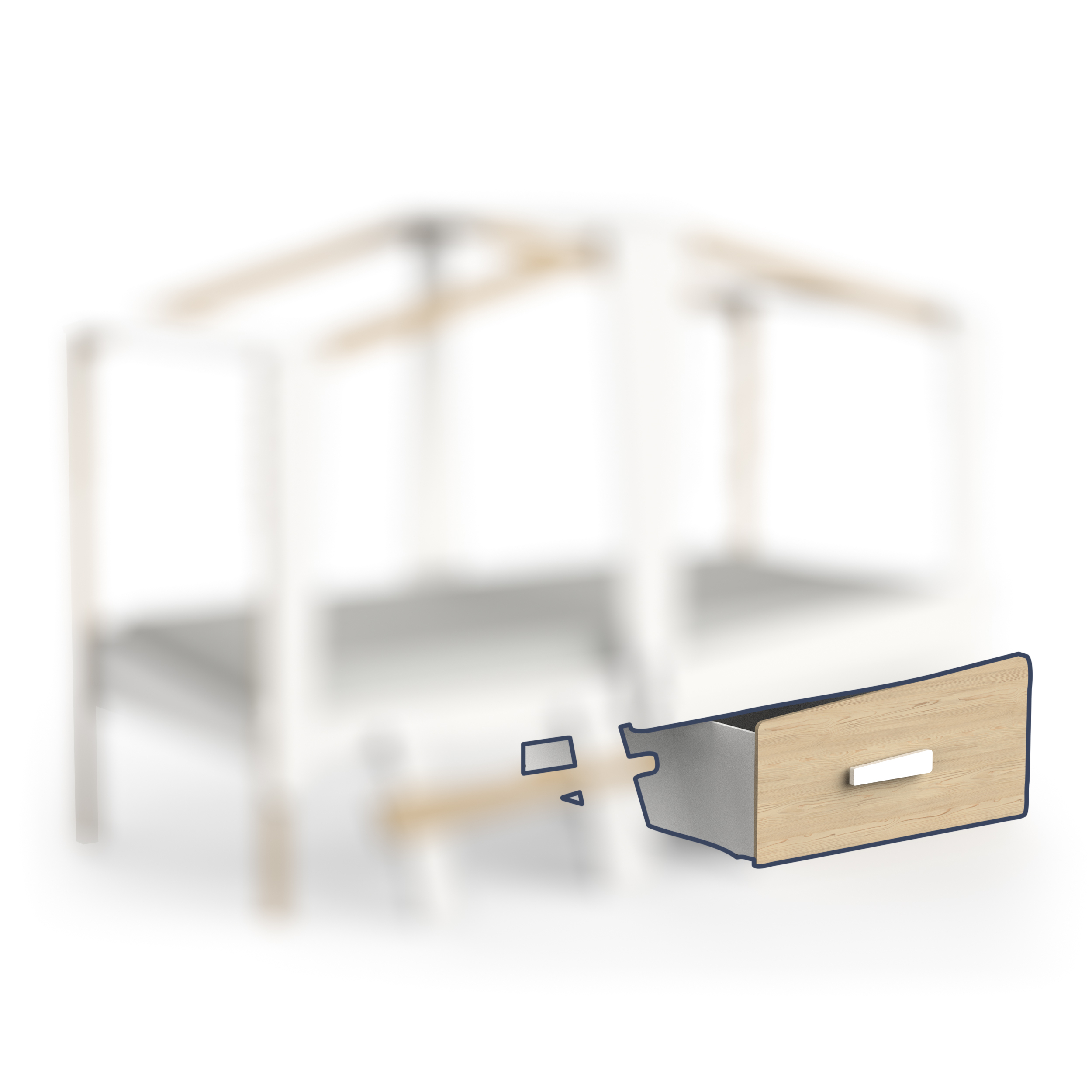 Zraven lahko dokupite tudi dodaten predal, v ujemajoči barvni shemi in z asimetrično fronto ki se natančno prilega pod posteljo. Letveni okvir je že priložen s posteljo.