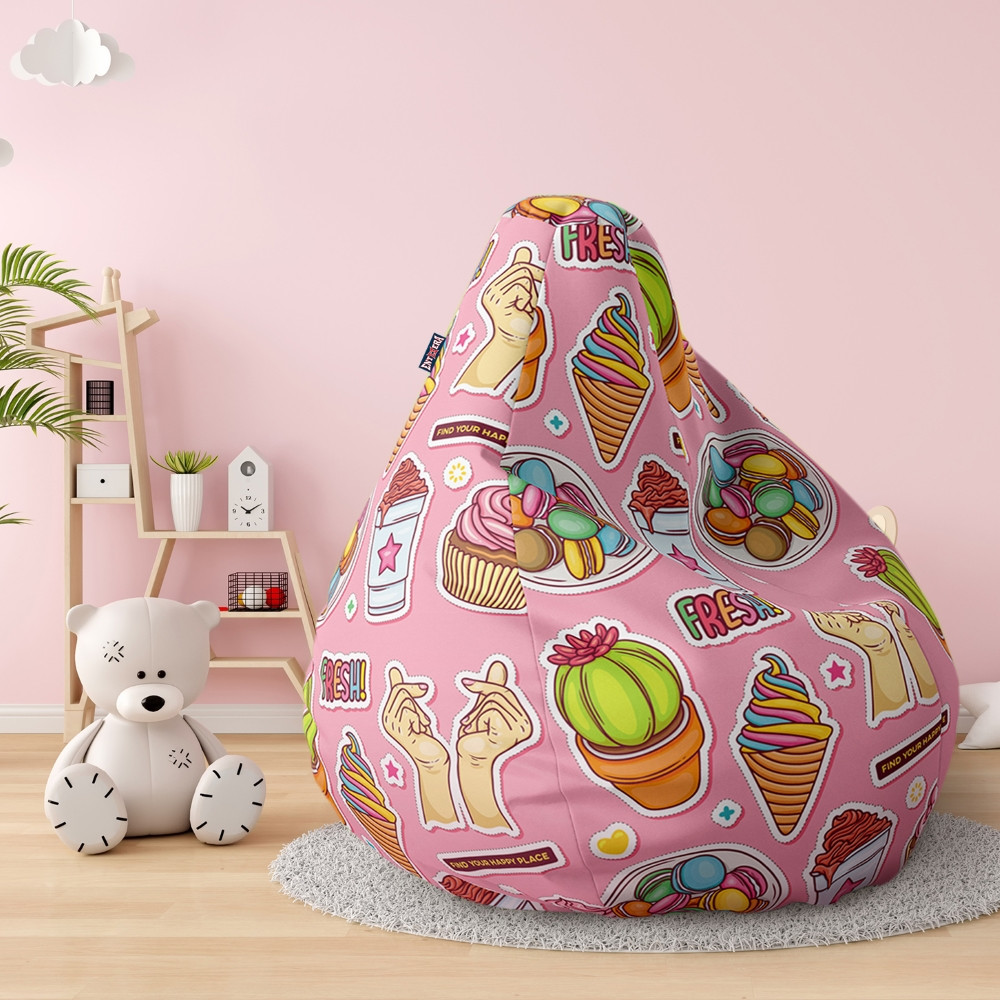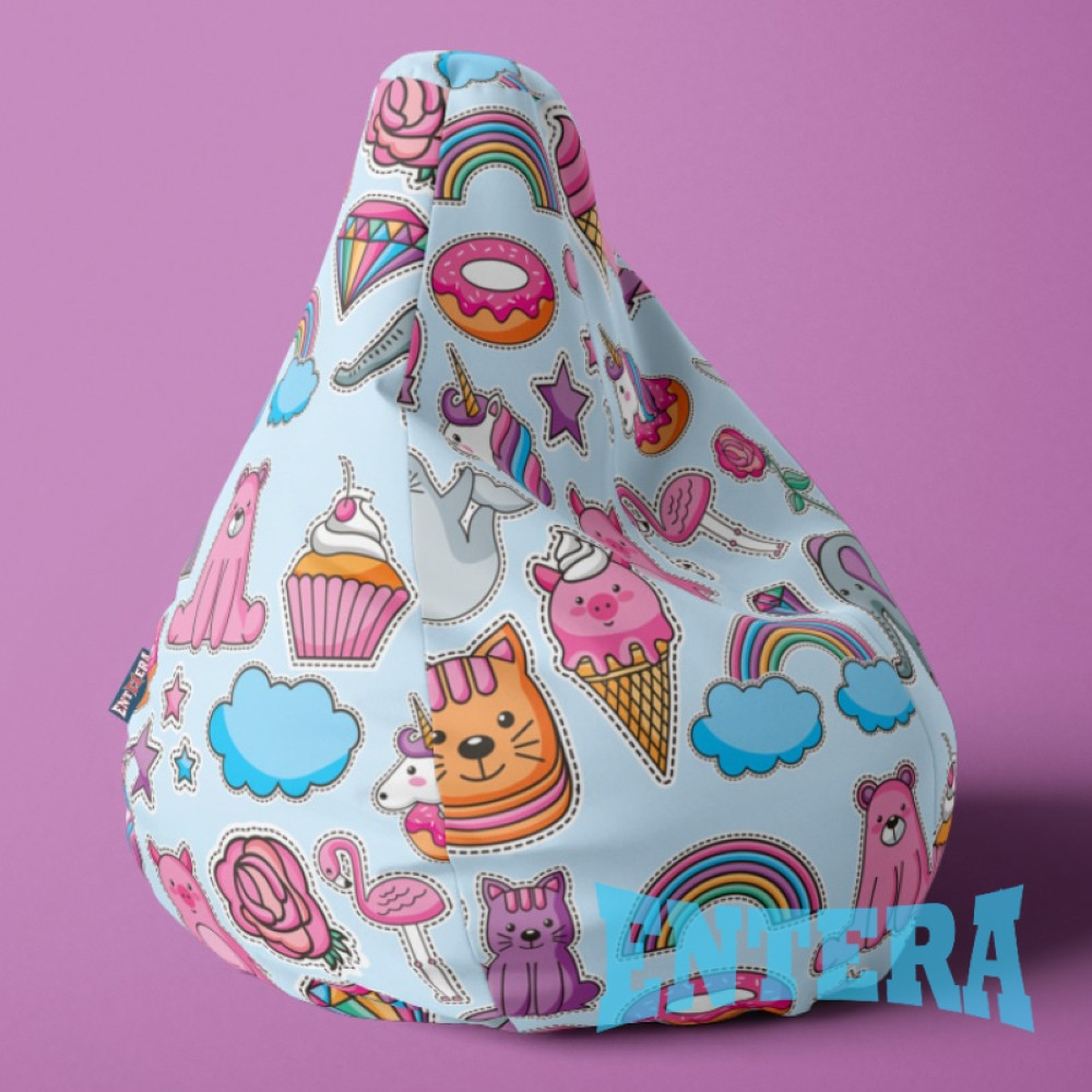 Sedežna vreča iz poliestra, na voljo v široki paleti vzorcev in barv. Vreča je izdelana iz visokokakovostnega poliestrskega materiala Shotex, močne in odporne tkanine, ki ima izredno širok spekter uporabe. Njegova čvrstost in debelina zagotavljata vzdržljivost in odpornost izdelka. Zunanja stran sedalne vreče je digitalno potiskana, notranja stran je bela. Dvojno šivanje in močni sukanci dajejo trdnost in izboljšajo vzdržljivost celotnega izdelka. Na spodnjem delu vreče je dvojno dno. Polnilo je zaprto z dvojno zadrgo in dodatnim ježek trakom. Vreče so primerne za dnevne sobe, otroške in mladinske sobe, itd. Oglejte si še ostale sedalne vreče in primerno polnilo zanje.
