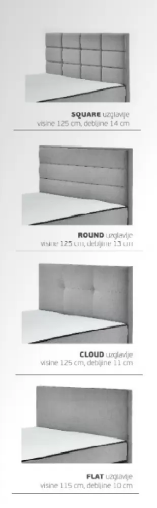 Cene veljajo za vzglavje FLAT, oblazinjenje PU SOFT in plastične nogice.