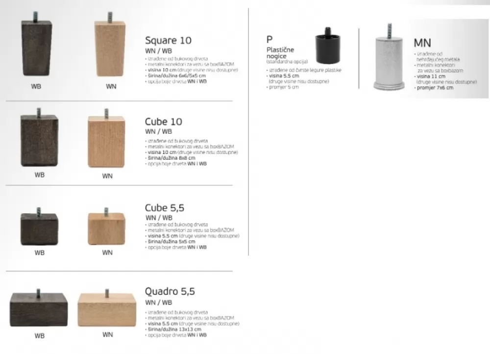 Z doplačilom možnost izbire med drugimi vzglavji, oblazinjenju in nogicami.