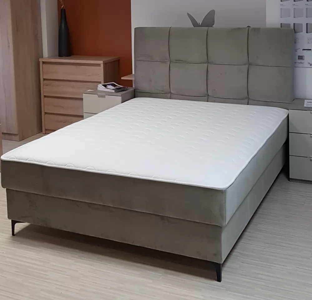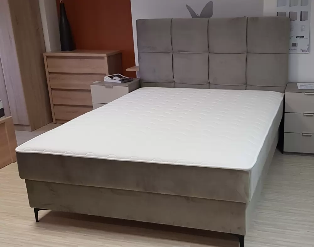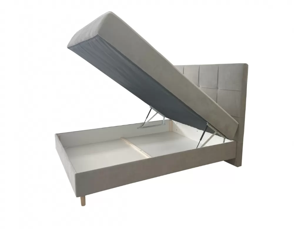 Moderna in kvalitetna postelja Ottawa. Postelja vsebuje zaboj za posteljnino in kvlitetno bonnell vzmetenje. Višina ležišča 61 cm, debelina vzglavja 10cm. Lesene nogice višine 13cm.