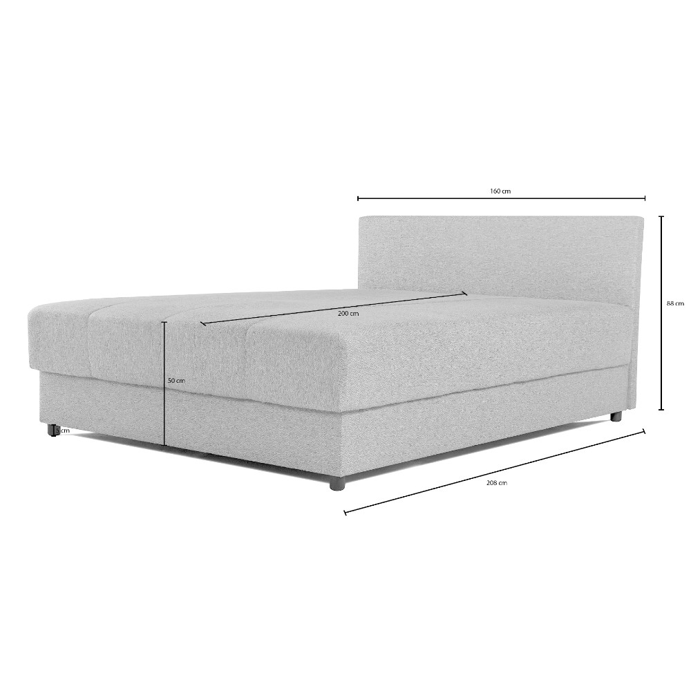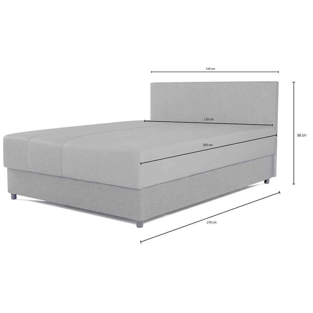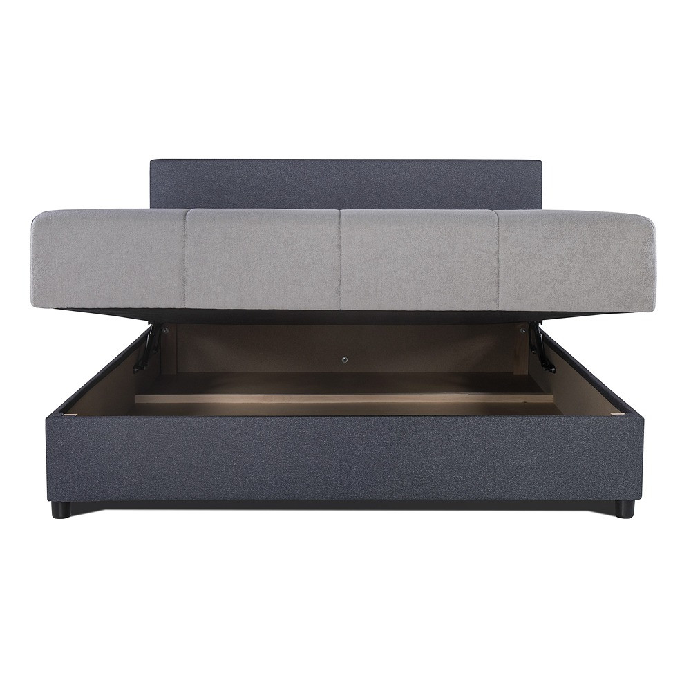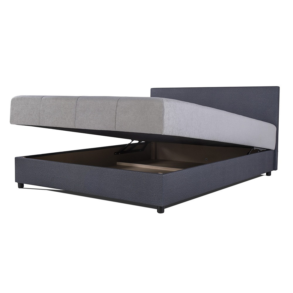 Velika in udobna postelja, na voljo v sivi barvi. Opremljena je z oblazinjeno naglavno ploščo in bonell vzmetenjem. Postelja je na voljo v 120x200 cm in 160x200 cm velikostih. Pod ležiščem se nahaja velik prostor za shranjevanje, ki se odpira s kovinskimi tečaji in kamor lahko shranite blazine, odeje ali kakršnekoli druge predmete. Postelja stoji na štirih črnih okroglih nožicah. Maksimalna nosilnost postelje je 250 kg.