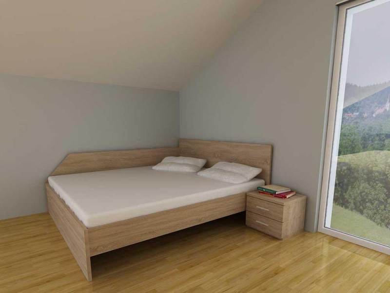Za lažje spravilo oblačil pa je na razpolago tudi posteljni okvir s pod posteljnim predalom. Podposteljni predal se lahko odpira z leve ali desne strani postelje. Podposteljni predal je lahko tudi krajši - ob uporabi nočne omarice. Zaradi omejitve prostora vam lahko višino vzglavne končnice tudi znižamo.