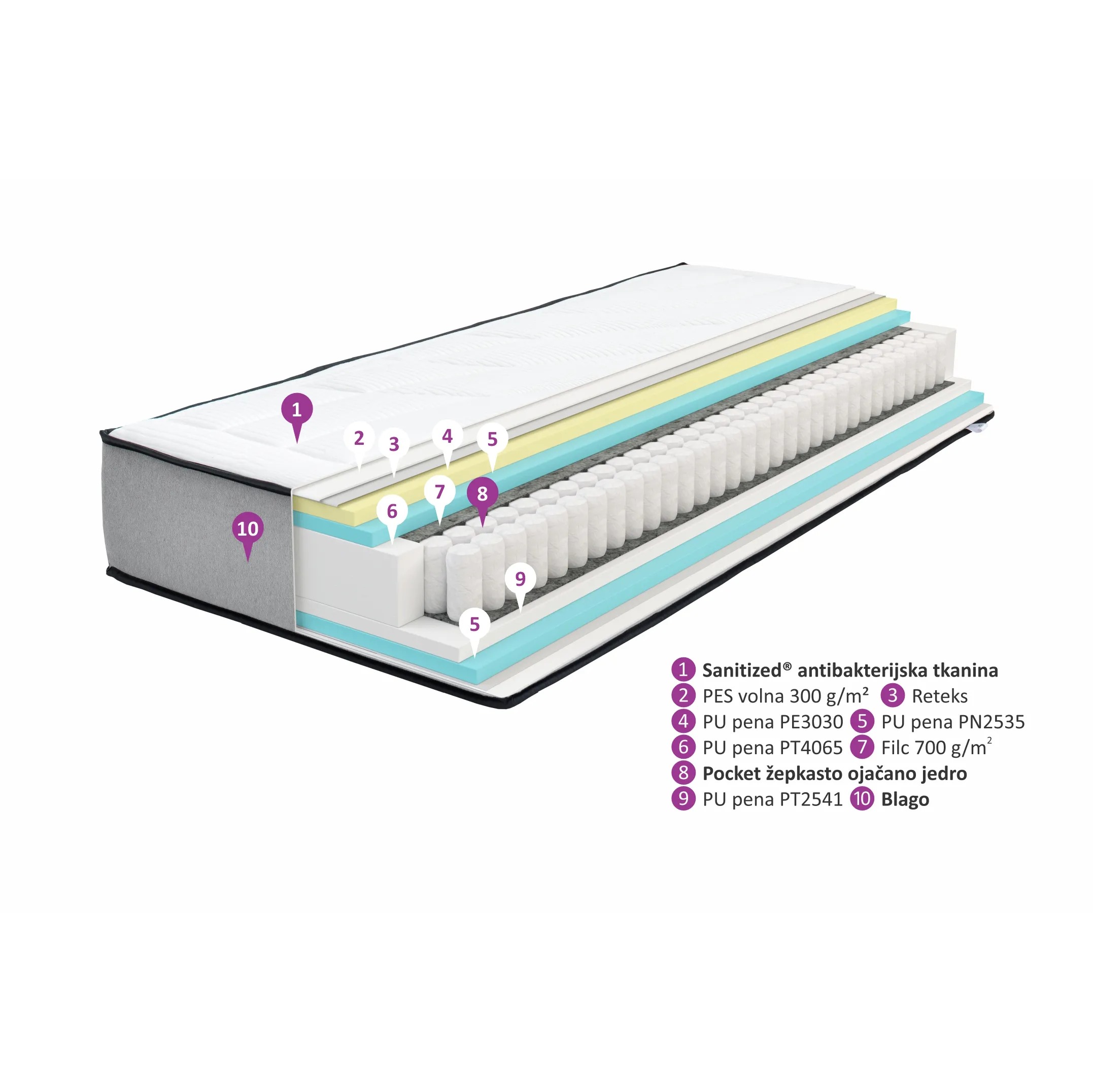 Sanitized® higienska obdelava je trajno integrirana v tkanino s funkcijo učinkovitega preprečevanja rasti bakterij, pršic in gliv.
